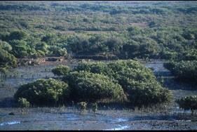 Left: Mangroves at low tide. Photo: I. Morgans, PP&WCMA.