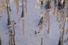 Right: Pneumataphores at low tide. Photo: T. Ealey, WPSP