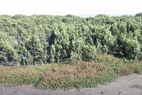 Right: Young seedlings growing at edge of the saltmarsh. Photo: T. Ealey, WPSP.