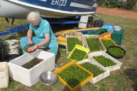 Dehusking mangrove seeds prior to planting. Photo: T. Ealey WPSP.